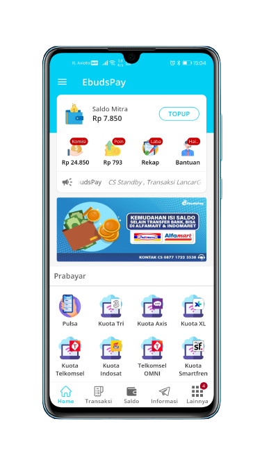 Tampilan Aplikasi yang user friendly, membuat para member nyaman untuk bertransaksi, selain transaksi lewat aplikasi juga di dukung transaksi lewat WhastApp dan Telegram.